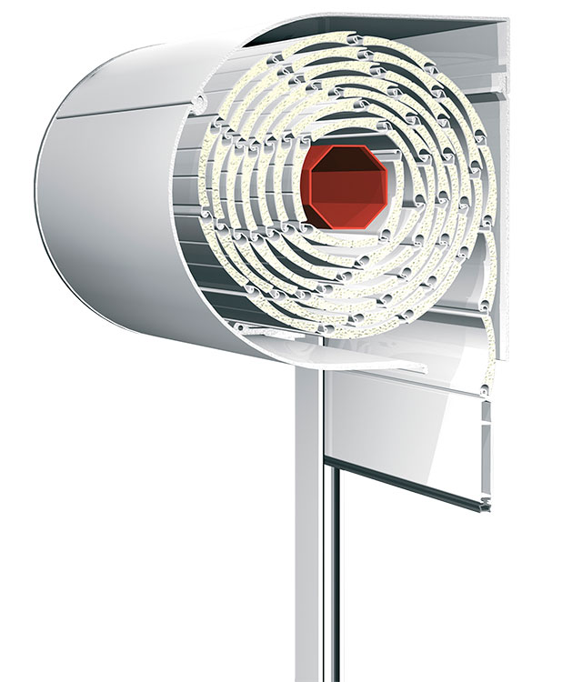 They consist of a polyurethane filling inside and aluminum foil on the outside. Previously, painted to ensure long lasting color. They are used for the production of aluminum blinds with PVC or aluminum box.